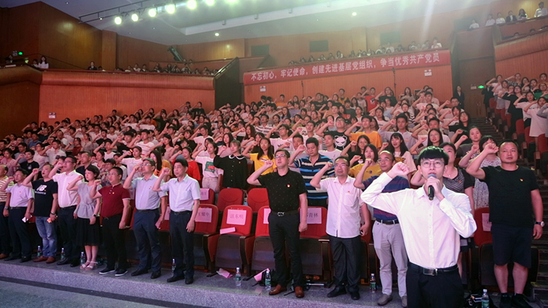 党委组织部部长李琼宣读《关于同意李靖等338名预备党员转正的批复》、《关于同意吸收邓琼等411名同志为中国共产党预备党员的批复》,全体党员面向党旗整齐肃立,在庄严的气氛中,进行新党员宣誓、老党员重温誓词。