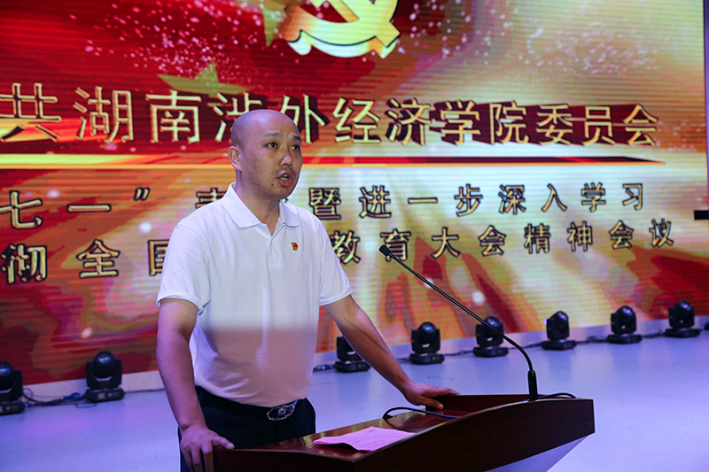 党委书记柴世钦在讲话中表示,在中国共产党建立98周年、新中国成立70周年之际,在全党开展“不忘初心、牢记使命”主题教育氛围中,我们隆重集会,举行新党员宣誓仪式,表彰先进典型,聆听“不忘初心、牢记使命”红色故事,接受革命传统教育,以这样的方式庆祝党的生日,颂扬党的丰功伟绩,坚持初心使命,激发前行动力,具有十分重要的意义。他结合进一步深入学习贯彻全国、全省教育大会精神,重点从加强思想理论武装、搞好党的建设等方面进行了阐述。他强调全校各级党组织要学习把握好习近平总书记关于教育的理论精髓,树立新时代立德树人精神,加强新时代教师队伍建设,全面加强党的建设,将思想和行动统一到中央的决策部署上来,用实际工作成效来检验“不忘初心、牢记使命”主题教育的实效。