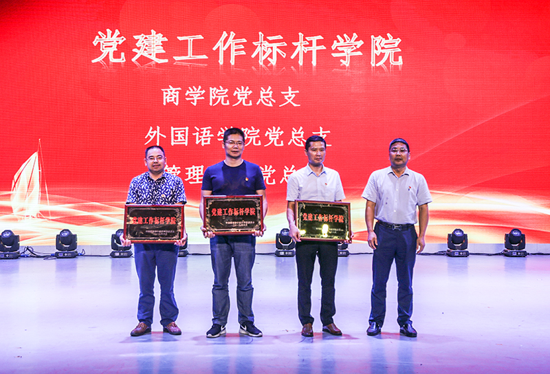 鞠晨曦副校长宣读《关于七一表彰的决定》。商学院党总支、外国语学院党总支、管理学院党总支获得党建工作标杆学院;第四直属党支部、第二直属党支部、信息与机电工程学院学生第二党支部、商学院教工第三党支部、文法学院学生第一支部、体育学院学生党支部、外国语学院学生第二党支部、第一直属党支部、管理学院学生第一党支部、音乐学院学生第二党支部获得党建工作样板党支部;彭浩、高金定、徐飞、陈洁、刘勇、王勇获得“双带头人”标兵;蒋慧敏等15人获得优秀党务工作者,马文娟等19人获得优秀教职工共产党员。另外,商学院分党校、文法学院分党校、艺术设计学院分党校、继续教育学院分党校、信息与机电工程学院分党校获得党校优秀组织奖;信息与机电工程学院党总支、外国语学院党总支、第四直属党支部、第一直属党支部获得2019年党风廉政建设宣传教育活动优秀组织奖。