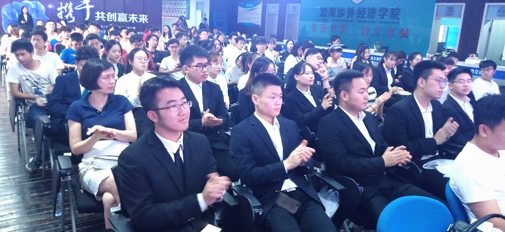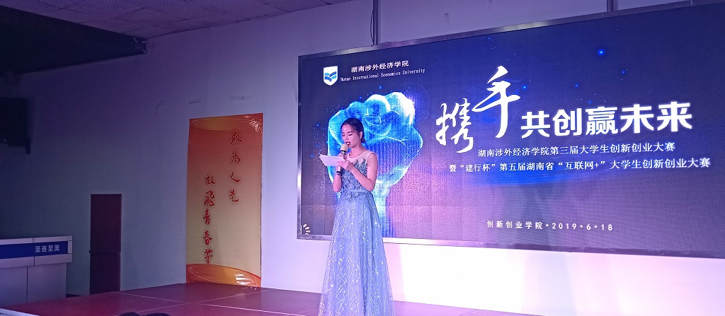 集聚创新思维,携手共创赢未来。为积极营造大学生成长成才的创新创业氛围,引导和帮助大学生树立创新意识、培养创新能力、锻造创业精神,搭建大学生创新创业项目与社会资源对接平台,6月18日晚七点整,创新创业学院举办的第三届大学生创新创业大赛决赛暨“建行杯”第五届湖南省“互联网+”大学生创新创业大赛选拔赛于beat365官网招生就业楼一楼隆重举行。副校长鞠晨曦,学工处处长邝继红,招生就业处处长涂乃天,商学院党总支书记唐志文,管理学院党总支书记吴九海,文法学院党总支书记丁洋等个项目团队指导老师、各二级学院就业创业负责老师莅临本次大赛。大树美业咨询创始人、智美优选美商平台联合创始人王志成,湖南省大中专院校就业创业指导中心市场主管贺阳,人事处常务副处长叶云霞,创新创业学院副院长李方圆,创新创业学院教研室主任梁倩担任评委。