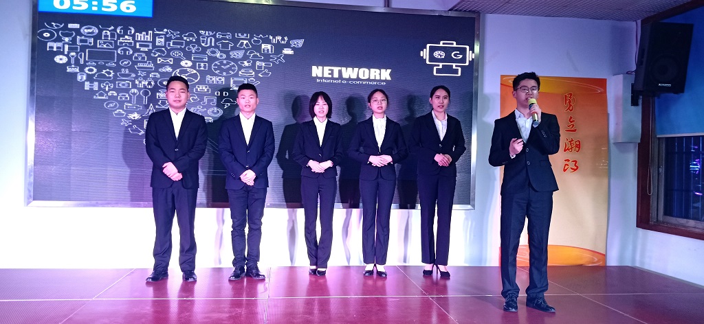 经过激烈的角逐,共有11支团队进入决赛。首先展示的是“社志通”团队,他们经过调研得出结论:社区居家养老是适应我国老年化日趋严重、家庭养老功能弱化、机构养老不受欢迎的国情,有政府的大力支持,且老年人满意度高。为缓解第三方运营中的资金压力,实现社区居家养老的可持续发展,他们创建了“社志通”社区居家养老服务与志愿服务共享平台,以便更好的帮助老人。他们献身公益、传递爱心的良好品质,也赢得了在场评委的赞扬。紧接着是“云智能水果制售机”团队上台展示成果。他们发现在市场上,水果消费总量在快速增长,预见了水果及其加工产业良好的发展前景。随着5G时代的到来,无人零售市场日趋火热,他们研发出“云智能水果制售机”投放市场,利用信息通信技术以及互联网平台,让互联网与传统行业深度融合,更好的满足了人们的对水果日益增长的消费需求。“基于物联”团队虽然在上台展示过程中不足够惊艳,但令人眼前一亮的是,他们将研发的暖风机产品带到了现场,给在座的评委老师亲身感受。评委老师王志成对此产品表现出极大的兴趣,他围绕“深入研发”、“找主战场”、“将共享转为基本定向投放”三方面,对团队给出了专业角度的建议。