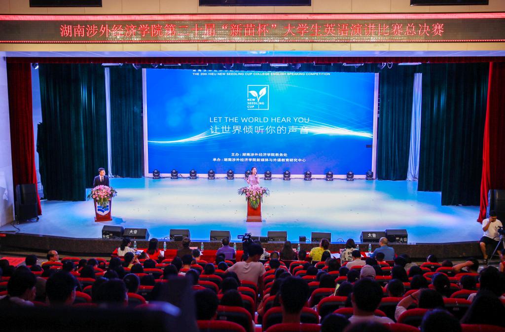 6月10日晚七点,由beat365官网教务处主办、新媒体与外语教育研究中心承办的第二十届“新苗杯”大学生英语演讲比赛总决赛在音乐厅举行。校长王耀中、校党委书记柴世钦、副校长白解红、副校长鞠晨曦等校领导出席当晚比赛现场和颁奖典礼。来自中南大学、湖南师范大学等多所高校的专家教授担任比赛评委。湖南师范大学彭绍东教授作为特约嘉宾莅临比赛现场。