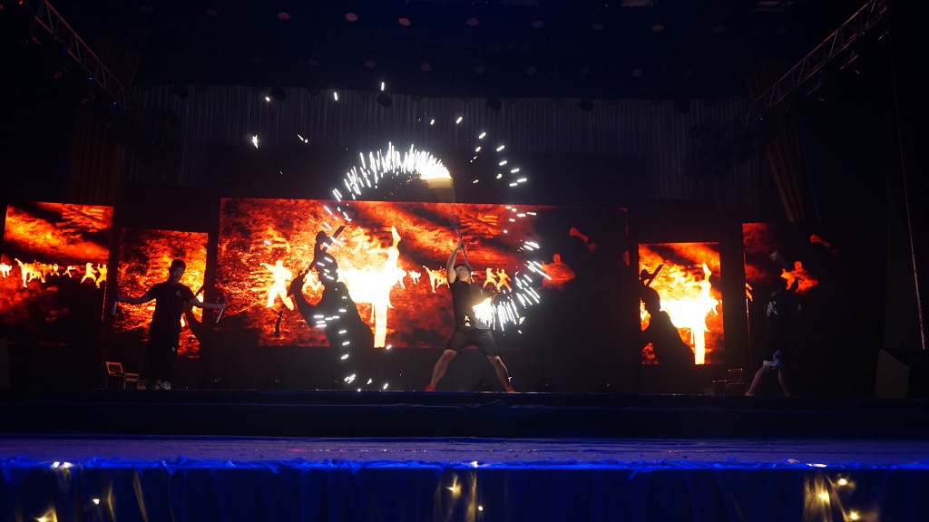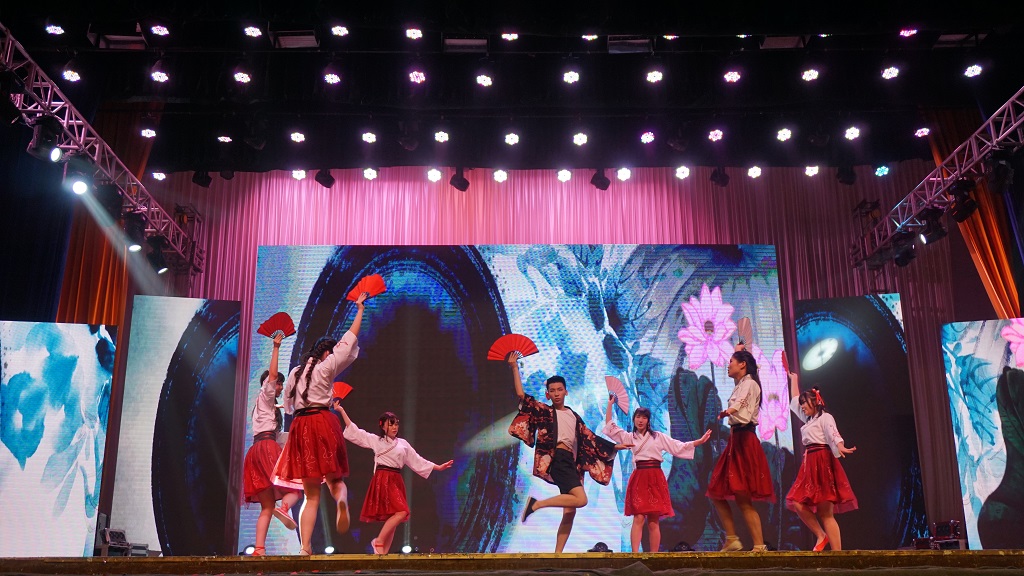 极风舞协以一场劲爆的街舞开场,挑起了满厅师生的激情,赢得了一片欢呼。各个社团依次登场表演,节目精彩绝伦。smile轮滑社把他们的舞台从火炬广场搬到了体育馆。他们手拿折扇,脚踩轮滑,伴随着一首《青花瓷》的配乐,高难度的轮滑动作赢得现场掌声不断。楚雷话剧社带来的话剧表演《恋爱操控师》,讲述了一个恋爱操控师帮助人追求到爱情的喜剧故事。随后动漫社带来中国风舞蹈《寄明月》,表演者高超的舞姿、轻灵的动感、活跃的气氛、纯真的中国风,尽情彰显中华文化;一马音乐社带来的歌曲《我管你》,更是引发了全场大合唱。晚会最后在学社联与书法协会共同表演的《半壶纱》中圆满结束。本次晚会由不同风格的舞蹈、话剧、相声、合唱等形式组成,整场晚会精彩纷呈、高潮迭起,充分释放了青春活力,彰显了社团风采,同时也宣传了社团文化,为现场观众呈现了一场视听盛宴。