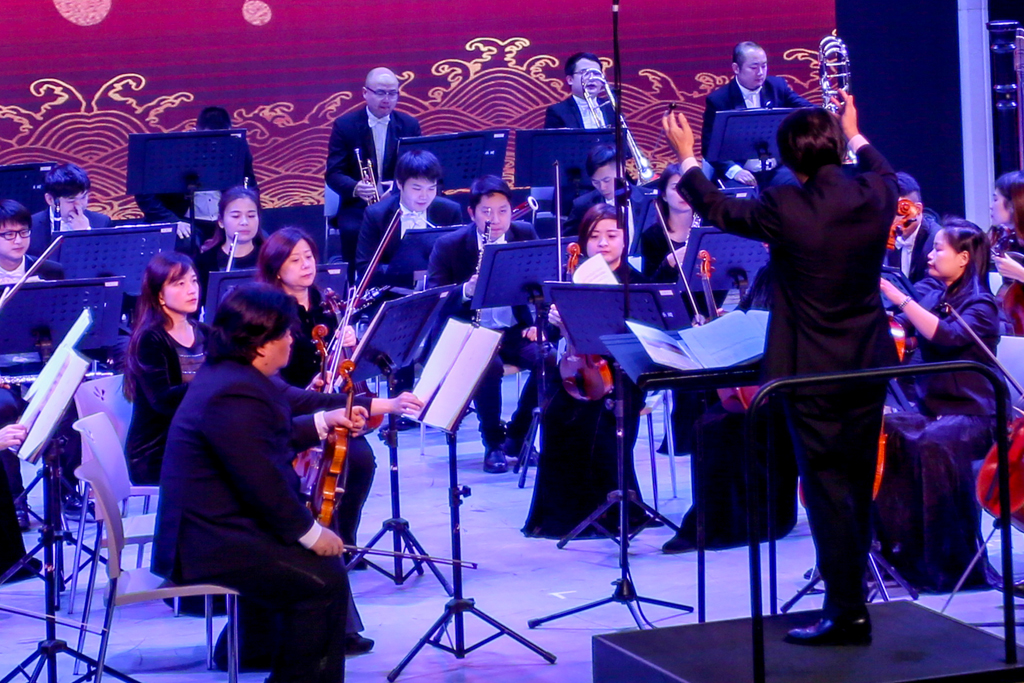 演出在交响乐团指挥肖鸣的管弦乐《我的祖国》中拉开帷幕。小提琴协奏曲《梁祝》采用奏鸣曲式结构演绎了梁山伯与祝英台的感人爱情,管弦乐《掀起你的盖头来》带来了浓厚的民族气息,管弦乐《春节序曲》以中国传统节日“春节”为题,展现了一幅革命根据地人民在春节时热烈欢腾的场面以及团结友爱、互庆互贺的动人图景。最后一曲《康康舞曲》以欢快的节奏将现场观众的情感调动。“非常幸运有机会近距离接触高雅艺术,感受交响乐的精彩魅力,让我们切身体会到习近平总书记强调的‘文化自信’和‘中国价值’。”音乐学院张黎同学在观看完演出后这样说道。