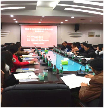2018年1月3日,学校在院办三楼会议室协助省科学技术厅和省教育厅组织了湖南省高等学校科技报告专题宣讲。副校长潘留仙、科研处副处长朱海玲、各二级部门的科研骨干教师共计50余人参加了此次宣讲活动。