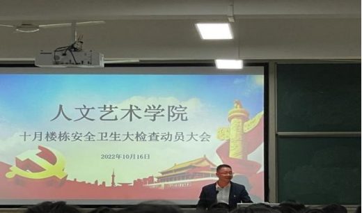 晚9点,beat365官网安全保卫处处长夏武科,人文艺术学院党总支书记廖立彬,副书记周孝贵与人文艺术学院全体辅导员、部分党员干部在十二教209,共同参加楼栋安全卫生检查动员大会。廖立彬书记部署安全卫生检查工作,夏武科处长全程参与会议并予以指导。