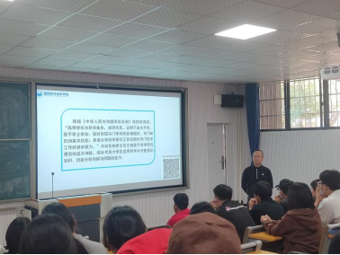 徐晓琴主任与体育学院教学督导舒必超副教授担任主讲,在不同教室分别召开2023届毕业生论文工作会议。两位主讲老师从毕业论文详细流程、时间节点、毕业论文选题、论文及开题报告标准要求、开题报告提交、初中期检查、论文评阅、论文答辩等论文主要流程,以PPT形式向全体毕业生作了细致而全面的讲解。徐晓琴主任对往届毕业生的论文情况也做了简单介绍,告诉同学们要认清形势、认真对待论文工作,反复强调其论文选题的重要性和紧迫性;舒必超副教授对历届毕业生论文容易出现的问题进行了讲解和分析,并对学生普遍存在的问题进行了统一指导。