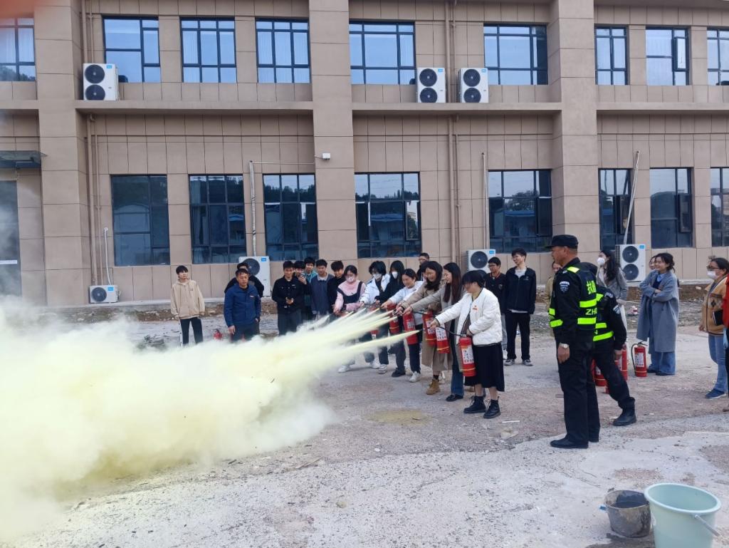 演习结束后,为了进一步加强师生的消防安全意识,学校综治办副主任陈波,为师生进行了消防安全知识培训。围绕火灾原因、逃生技巧、火灾类型及如何使用灭火器等消防安全知识,一一为大家讲解与演示。随后,学校消防科长漆光剑,在预定地点进行了干粉灭火器灭火现场演练,参培师生分组、分批次进行了现场灭火实操。