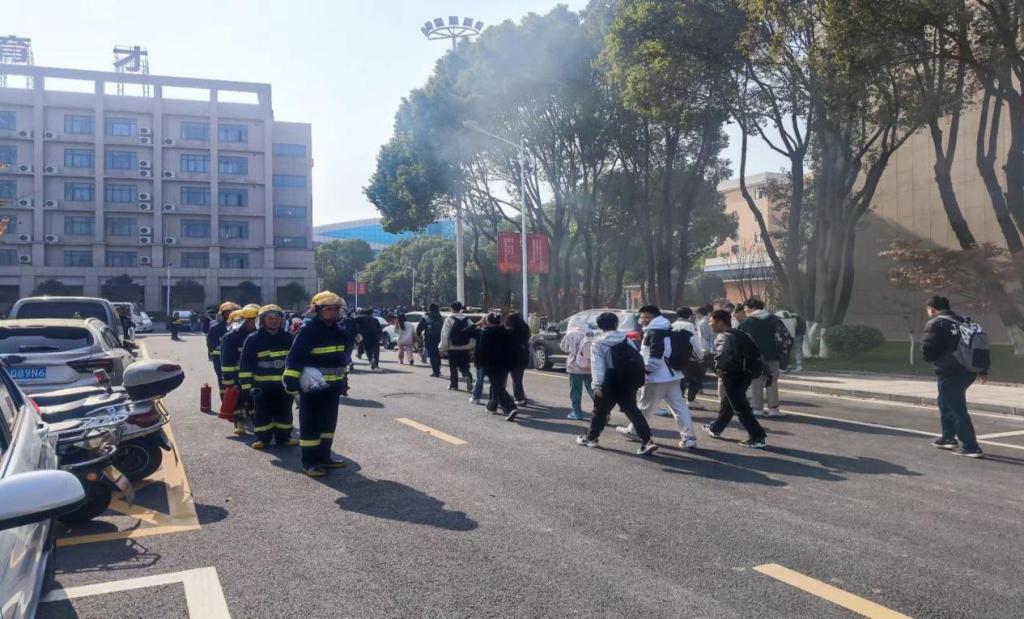 活动中,随着消防警报声响起,各楼层指挥老师迅速到达指定位置,沉着冷静地指挥师生,按照应急逃生预案,用毛巾或者手捂着口鼻,沿着楼梯通道,弯腰靠墙快速、有序撤离到安全地带,做到了安全,快速,有序。同时,微型消防站队员身着消防服,手持灭火水带、灭火器迅速到达预定位置将火扑灭,整个过程前后衔接连贯,在规定时间内成功疏散了全体师生,演练取得了圆满成功。