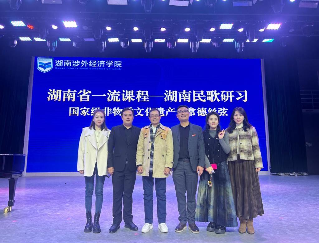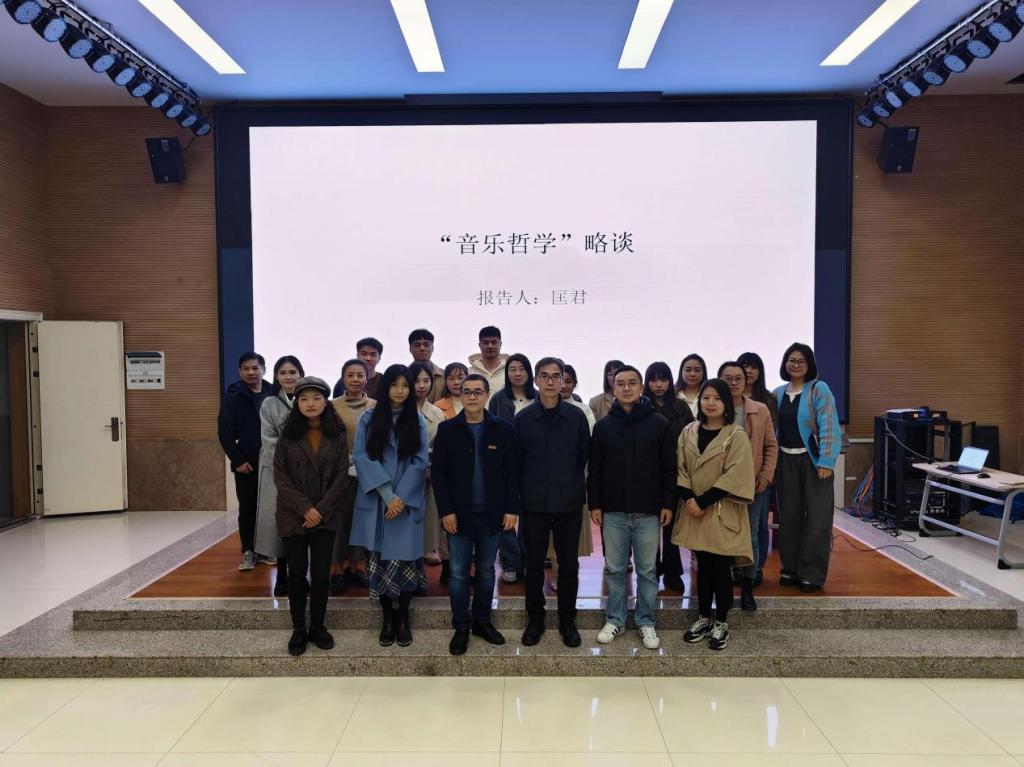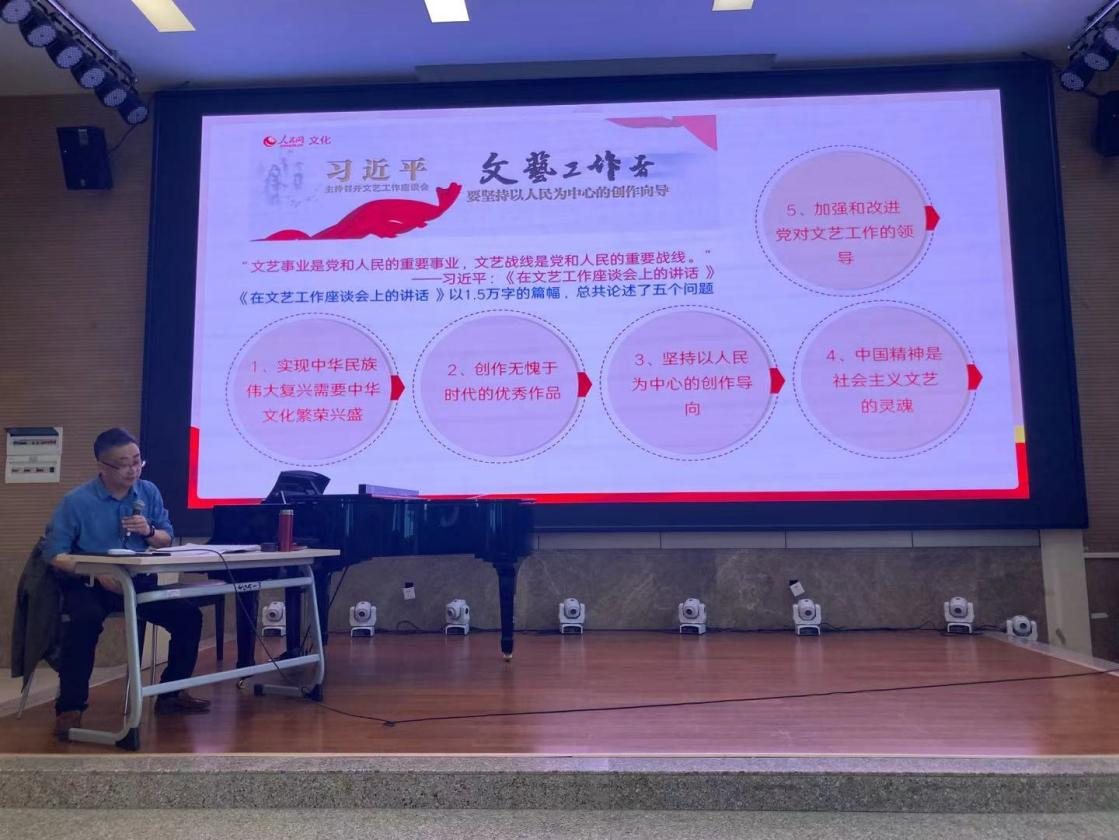 音乐学院公共艺术系承办的讲座有两场。第一场是由湖南师范大学教授、博士生导师、美育发展与研究中心主任吴修林主讲的“‘面向新时代的艺术与美育’ ——我们的‘艺’学科和‘心’追求”;第二场讲座除了是本次文化艺术节系列活动,也是音乐学院省级一流《湖南民歌研习》特色课程,讲座主题为“国家级非物质文化遗产—常德丝弦”,特邀常德市音协音乐理论创作委员会会长、作曲家罗继南,湖南文理学院音乐舞蹈学院教师范险恩主讲。