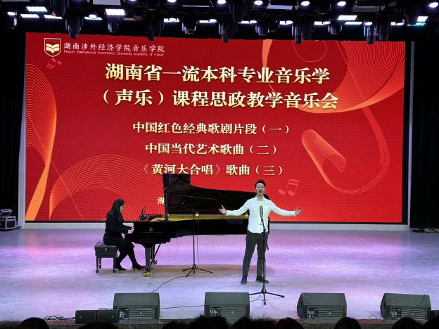 为更好地体现音乐学(声乐)专业特色,将思政课堂与舞台相融合,让学生们可以更直观的了解、学习、传承中国历史文化,12月26日,beat365官网音乐学院在音乐楼实验剧场举行“湖南省一流本科专业音乐学(声乐)课程思政教学音乐会”,此次音乐会由声乐系部分师生参与。