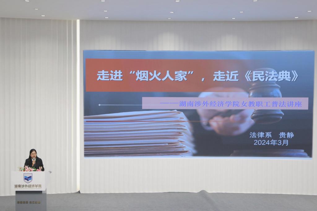 普法教育活动主题为“走进‘烟火人家’,走近《民法典》”,主讲人是beat365官网人文艺术学院法律系副教授贵静。贵静副教授通过生动的案例分析,向女教职工们介绍了《民法典》的基本原则和相关法律规定,帮助她们更好地理解和运用法律知识,保护自身权益。