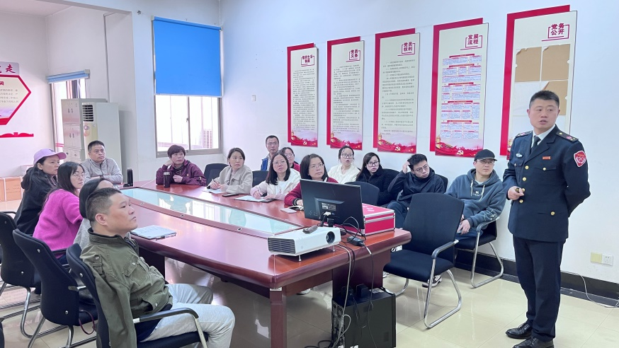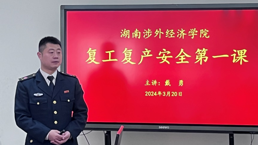会上,湖南省建湘安全防火宣教中心资深讲解员戴勇作了以《复工复产安全第一课》为主题的消防安全宣传讲座。针对火灾发生的原因、类别,结合高校图书馆的特点,详细介绍了消防器材的正确使用方法、疏散人群的时机和方式、火灾现场自救逃生技巧等专业知识。采用图文并茂的形式为全体馆员普及消防安全知识,汲取寒假以来国内多起重特大事故教训。
