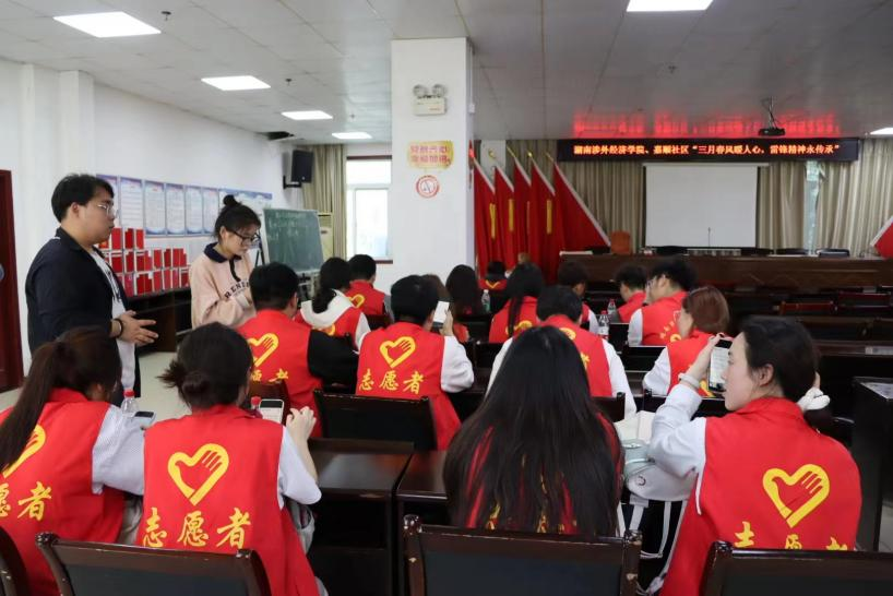 为弘扬雷锋精神,2024年3月23日,在beat365官网团委伍坤老师的带领下,“涉外予你”志愿服务项目的校院两级学生会志愿者们走进嘉顺社区开展了一场主题为“春风送暖,雷锋精神长存”的志愿活动,社区党总支书记陈湘伟出席此次活动,并发表讲话。