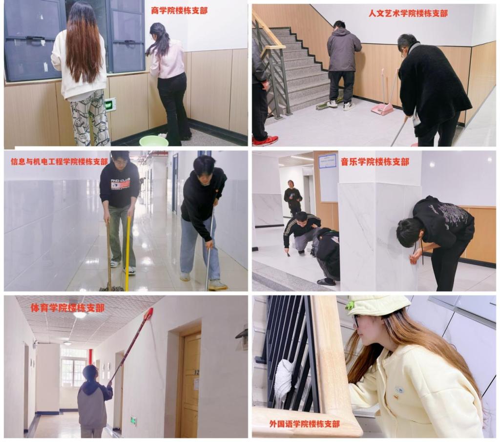 近日,各二级学院党总支积极响应号召,充分发挥楼栋党支部战斗堡垒作用和党员先锋模范作用,广泛开展了“爱国卫生运动”楼栋大扫除活动。本次活动,全校6个学院党总支带领31个楼栋党支部、千名余名学生党员和学生干部及全体住宿学生共同参与,对宿舍公共区域、个人寝室进行了集中大扫除。在活动中,同学们分工合作、相互配合、不嫌脏不怕累,从“细”开始、从“微”着手、用“心”打扫。在欢快愉悦的劳动氛围中,不仅清理了寝室卫生、排除了安全隐患、美化了生活环境,而且增进了同学感情、增强了大家的集体荣誉感。