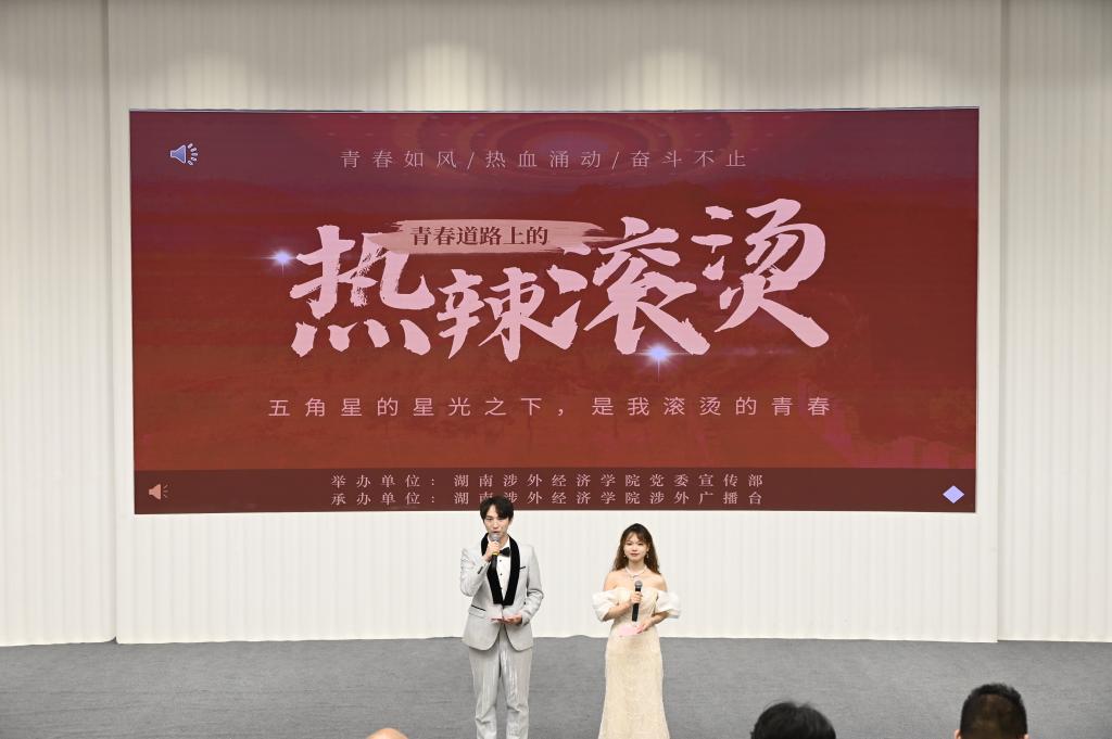 五角星的星光下,是我滚烫的青春!4月26日晚,由校党委宣传部主办、校广播台承办的“热辣滚烫”主题演讲比赛决赛在学术讲堂拉开帷幕。校党委宣传部陈梦军、马克思主义学院副教授李玉兰、外国语学院学生支部段蜜、体育学院表演系赵松涛等老师担任本次大赛评委,向佳兴、张文娟同学共同主持本次比赛。