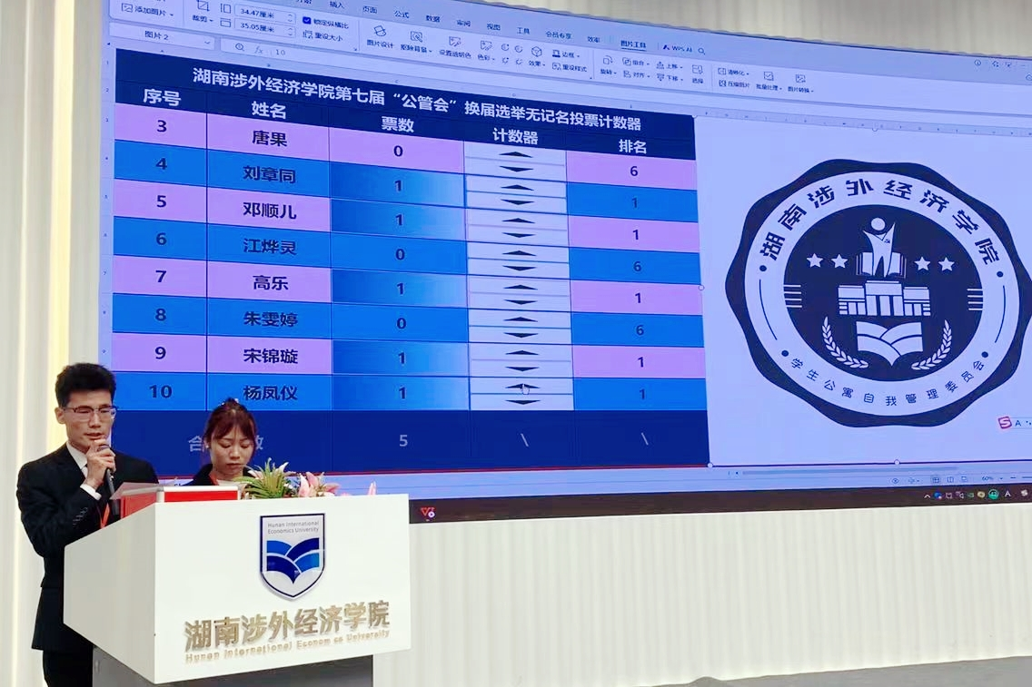 随后,杨子仪、石珂、唐果、刘章同、邓顺儿、朱雯婷、高乐、江烨灵、宋锦璇、杨凤仪等10位候选人依次上台发表竞选演讲,分别展示自己的过往经历和竞选优势,阐述了加入公管会的初心以及对未来工作的设想。竞选演讲结束后,大会秉持“公平、公正、公开”的原则,经过无记名投票,选举产生了杨子仪等7位新一届公管会委员名单并上报学生工作部(处)审议和公寓党总支备案。