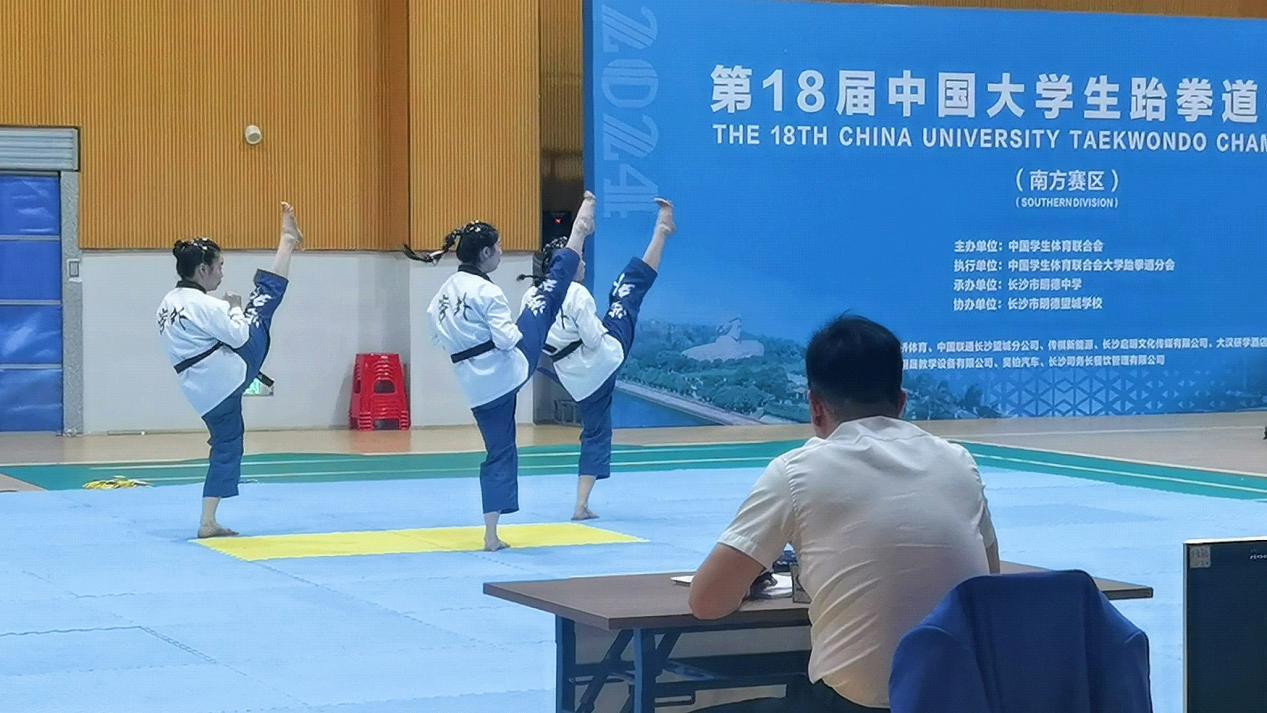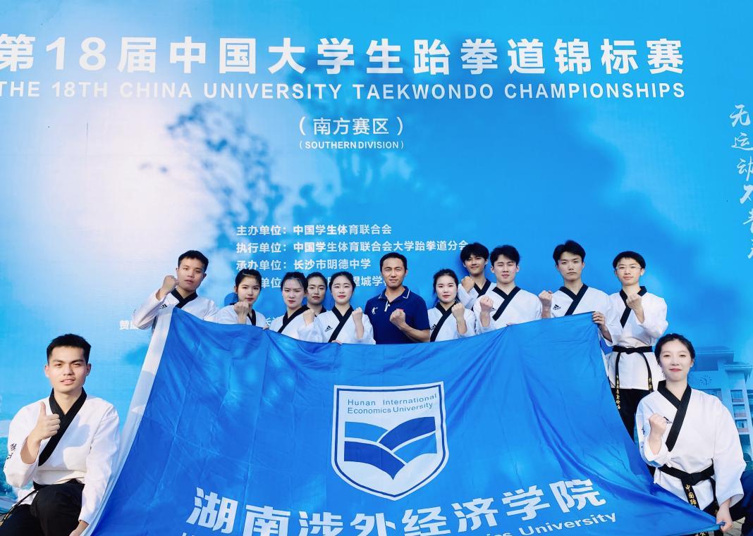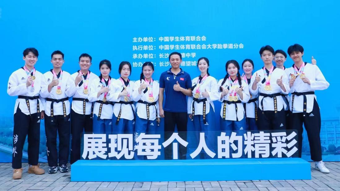 5月19-25日,由中国学生体育联合会主办的2024年中国大学生跆拳道锦标赛(南方赛区)在明德望城学校举行,本次比赛汇集了全国242所高校共计2200余人参加。beat365官网跆拳道代表队由体育学院院长谢明领队,休闲体育系青年教师简志海担任教练,选派休闲体育专业共12名学子参赛。在比赛过程中,队员们展现出了顽强的斗志和精湛的技艺,每一次出腿都干净利落,每一次防守都严密谨慎。在激烈的角逐后,获得了6金2银的优异成绩,同时,简志海老师被评为优秀教练员,熊永豪评为优秀运动员。