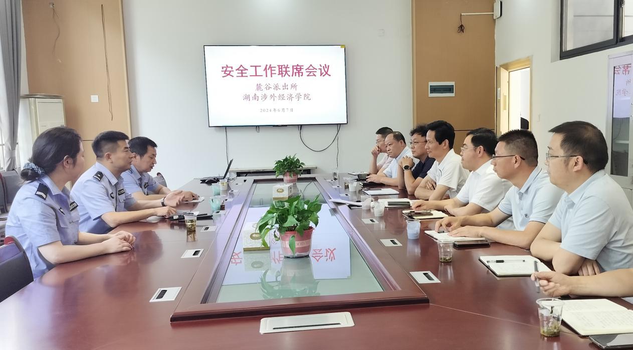 为进一步加强平安校园建设,推进校警联动长效工作机制,根据主管校领导指示精神,6月7日上午,安全保卫处联合麓谷派出所召开校园安全工作联席会议,并邀请了学生工作处负责人和各二级学院党总支书记参加。麓谷派出所副所长胡喆率驻校民警李新元等一行参加会议。