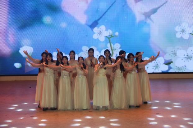 展演现场,学生们以悠扬的《上春山》中拉开序幕,紧随其后的《梨花又开放》和《桃花笑》,如同一幅幅生动的画卷,展现了其对自然与生活的细腻感知;从《听妈妈讲那过去的事情》到《映山红》,同学们传达着对历史的尊重和对未来的憧憬。歌曲《龙文》和《蝴蝶泉边》,不仅展示了他们扎实的声乐技巧,也映射出对中华民族传统文化的传承与发扬。同时,此次展演还特别邀请了音乐学专业同学倾情献唱《春花秋月何时了》《在那遥远的地方》《念奴娇·赤壁怀古》与《长相知》,更是将传统诗词与现代音乐完美融合,为晚会增添了浓厚的文化底蕴。