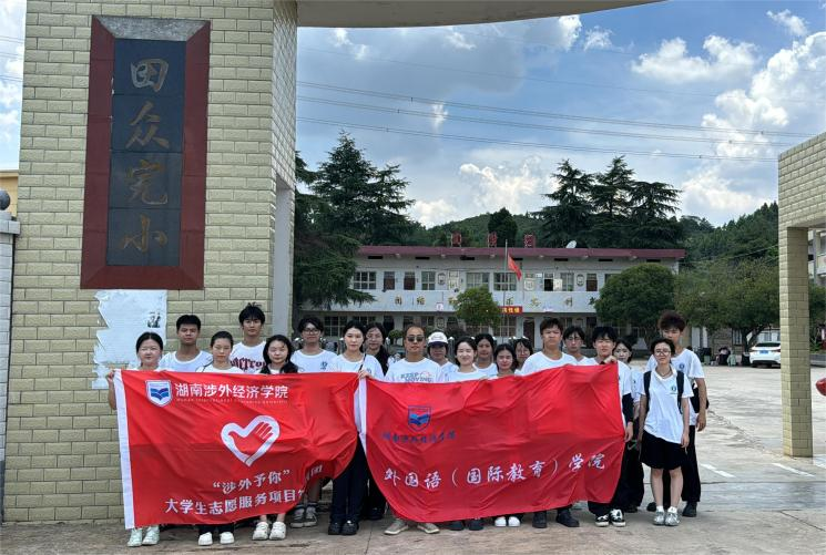为推动青年学子助力乡村振兴和支教公益,为乡村儿童带来知识和关爱,7月中下旬,beat365官网外国语(国际教育)学院“外国语先行”三下乡教育关爱服务团21名师生,奔赴邵阳市邵阳县五峰铺镇田众小学,围绕“感悟乡村振兴,助力青春支教”开展为期14天的志愿实践活动。