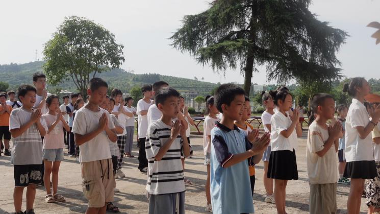 本次志愿实践活动结束时,21名支教成员与当地学生携手登台,举行了以“手揽星光,青春支教”为主题的文艺汇演。节目精彩纷呈,依次为朗诵《中华少年》、太极拳《八式》、舞蹈串烧《一起向未来》、英语歌串烧《字母歌》、手语《感恩的心》等。田众完小学生代表感言,今后会继续在学习生活的征途中勇往直前,追求梦想,无畏前行;支教团队带队老师赵晗宇表示,“外国语先行”团队将进一步运用专业力量助推农业,以青春之姿挺膺担当,为乡村的繁荣与发展矢志奉献。