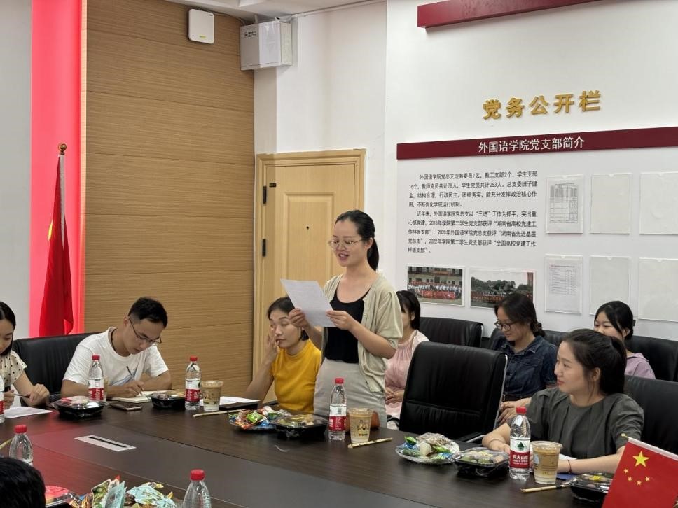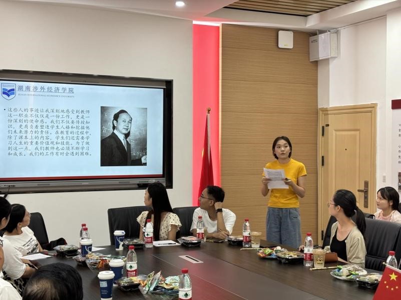 围绕“大力弘扬教育家精神,加快建设教育强国”的主题,外国语与国际教育学院教师代表桂艳玲、廖师师、谭雅倩、文岚老师结合各自的成长经历,谈感受,说体会,话发展,共享教书育人的经验,言谈中表达了对学校的培养、导师指导的感激之情,让与会教师深受感动和启发。