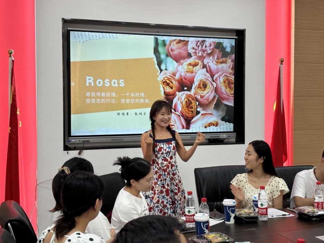 会议伊始,姚佩芝院长代表外国语与国际教育学院向全体教师致以节日的问候。随后朱璇子老师演唱西班牙语歌曲《玫瑰》,拉开了本次教育教学经验交流、教学技能展示会的序幕。