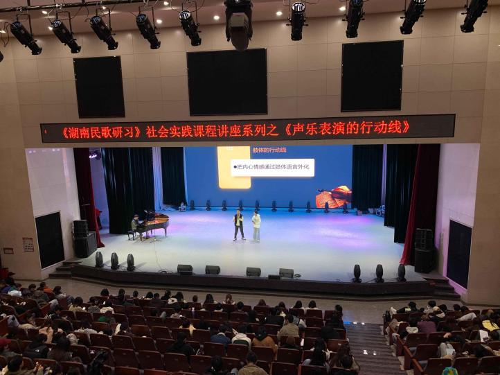11月27日,《湖南民歌研习》课程组迎来了第二场讲座,特邀青年男高音歌唱家、国家二级演员、湖南林业科技大学客座教授,邵阳市文联副主席张映龙在音乐楼实验剧场就《论声乐表演的行动线》专题,分享了地方民歌的独特魅力和演唱技巧。讲座由课程组教师徐花主持,课程组教师及2021级音乐学专业全体学生参与。