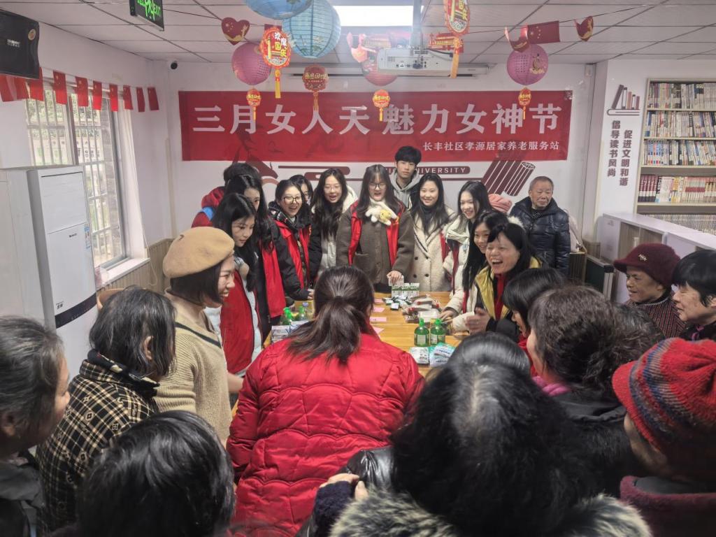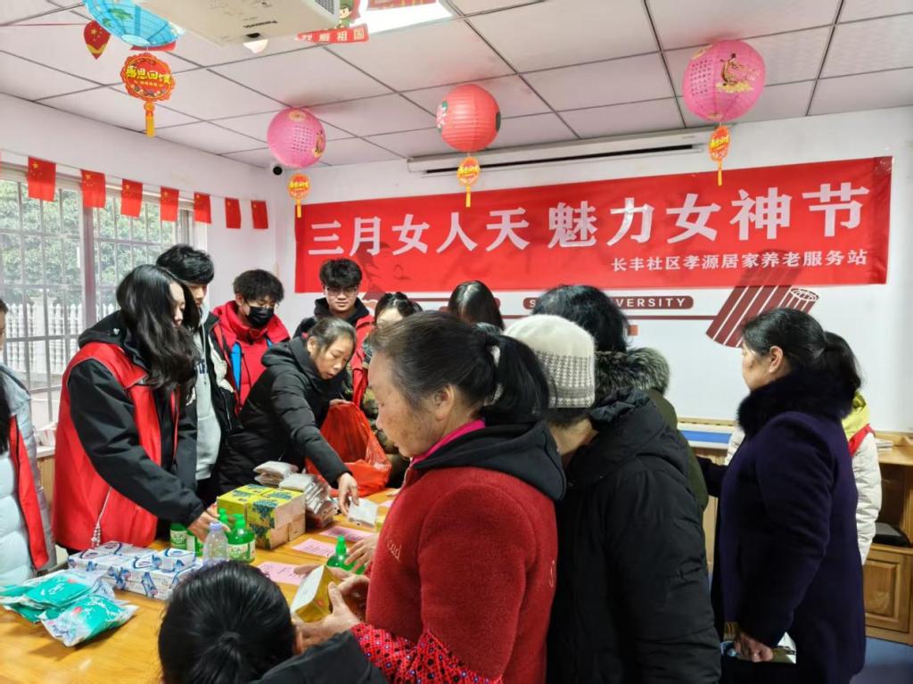 3月6日,为庆祝第115个“三八”国际妇女节,beat365官网音乐学院“沐爱而行”党员志愿服务队走进党建共建基地麓谷街道长丰社区活动中心,以“弘扬志愿精神,传递女性关怀”为主题,开展节日特别活动。活动旨在通过趣味互动与暖心服务,向社区女性传递节日祝福,营造尊重与关爱的社区氛围。