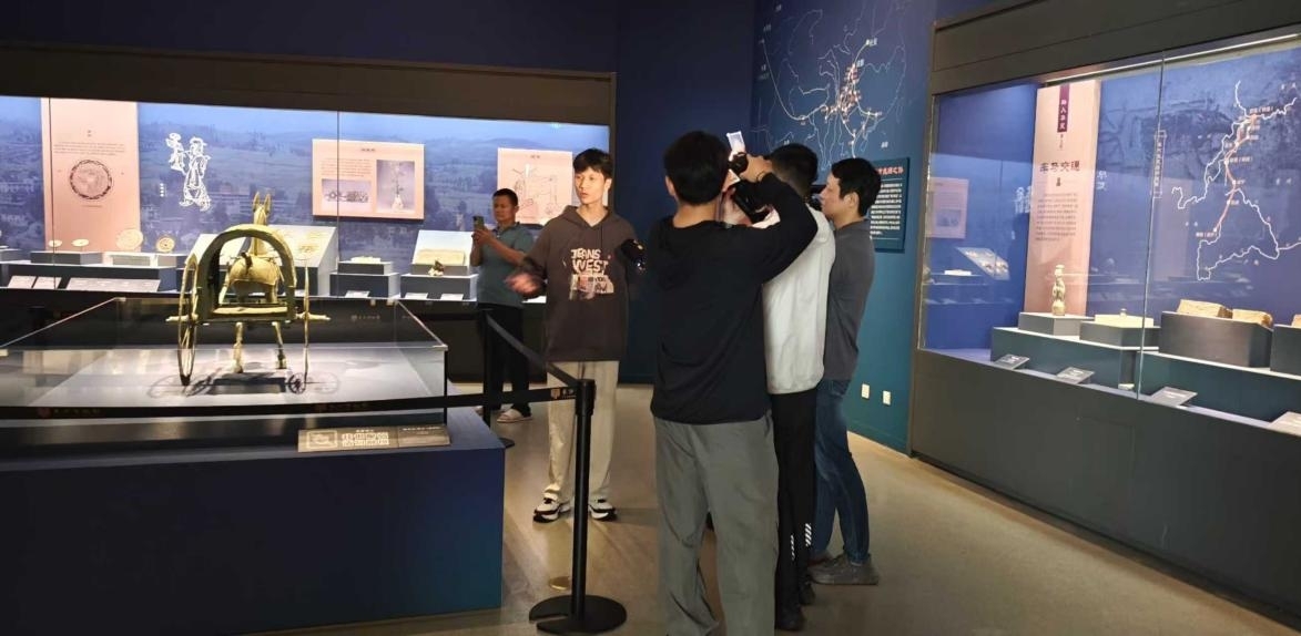 离开规划展示馆后,师生们满怀期待地前往长沙市博物馆,重点对《夜郎遗踪:探秘两千年前的古国传奇》展览的展陈空间进行深度考察。在展馆考察过程中,师生们全神贯注、沉浸其中,其专注的状态吸引了湖南都市频道前来采访。