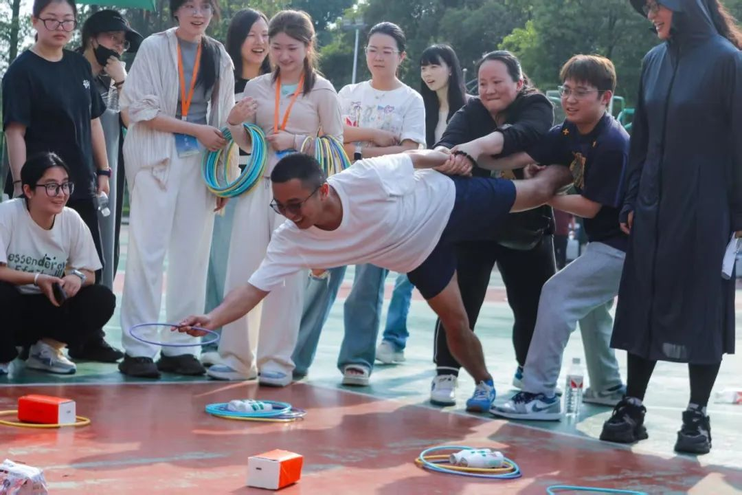 本次运动会共设有七个趣味项目:夹气球、袋鼠跳、套圈、纸杯接水、摸石过河、两人三足、乒乓球托球。这些项目不仅考验辅导员们的个人能力,更强调团队协作。在比赛过程中,辅导员们暂时放下了繁忙的工作,在欢声笑语中展开了一场别开生面的竞技比拼。