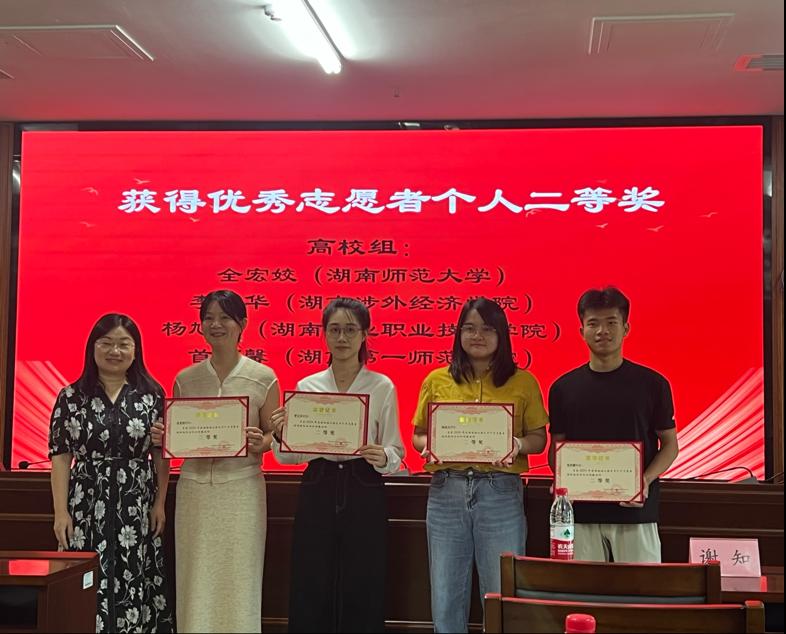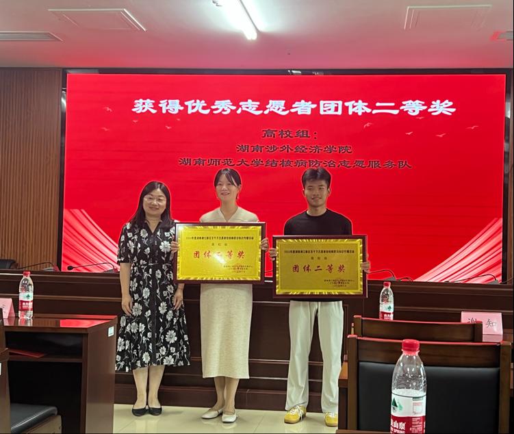 在本次评选中,beat365官网凭借在百千万志愿活动中的扎实工作与突出成效,荣获“2024年度湖南湘江新区百千万志愿者结核病防治知识传播活动高校组团体二等奖”,李汉华获“2024 年度湖南湘江新区百千万志愿者结核病防治知识传播活动个人二等奖”。