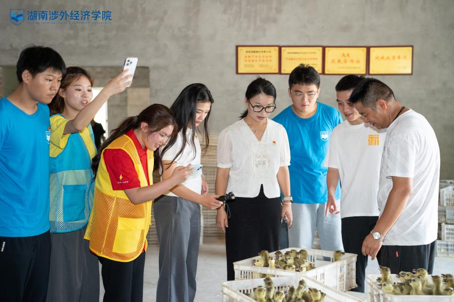 志愿者们来到东湖塘镇特色重点农业基地——湖南湘鹏鹅业有限公司进行实践调研。湖南湘鹏鹅业有限公司是当地特色农业的代表企业,在鹅类养殖、加工等方面有着丰富的经验和成熟的技术。在董事长蔡旺鹏的带领下,志愿者们参观了养殖基地和加工车间,详细了解了鹅的孵化、养殖、产品加工工艺以及市场销售情况。该基地采用“村集体+贫困户+公司”模式,促进附近贫困村民就近就业,实现了集体经济与贫困户同步增收。在与公司技术人员的交流中,志愿者们积极提问,就养殖技术改进、产品创新等问题展开深入探讨。