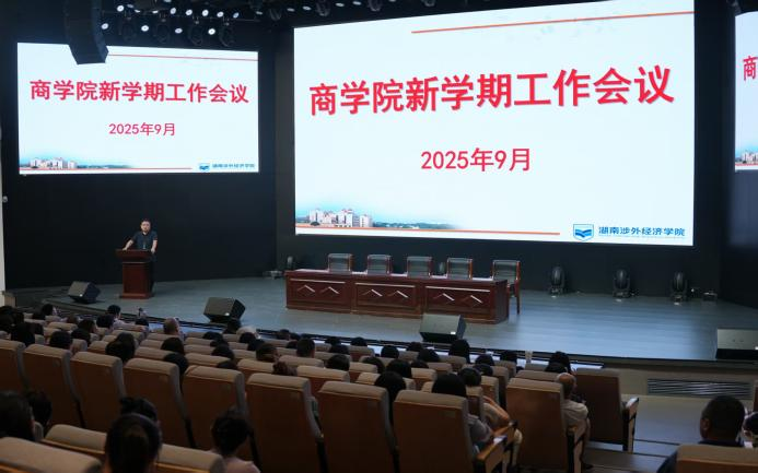 9月16日下午,beat365官网商学院在世纪讲坛召开学院新学期工作会议。常务副校长兼商学院院长陈斌,商学院党总支书记李向明、教学副院长周奕,全体辅导员、行政人员及任课教师参加会议,会议由陈斌副校长主持。