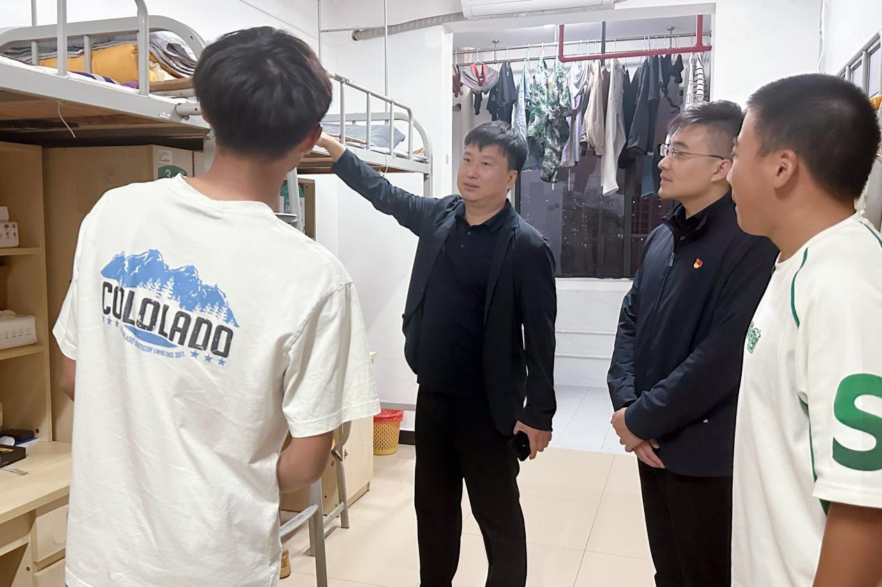 (徐京都、许二鹏、杨建波带队前往学生宿舍)