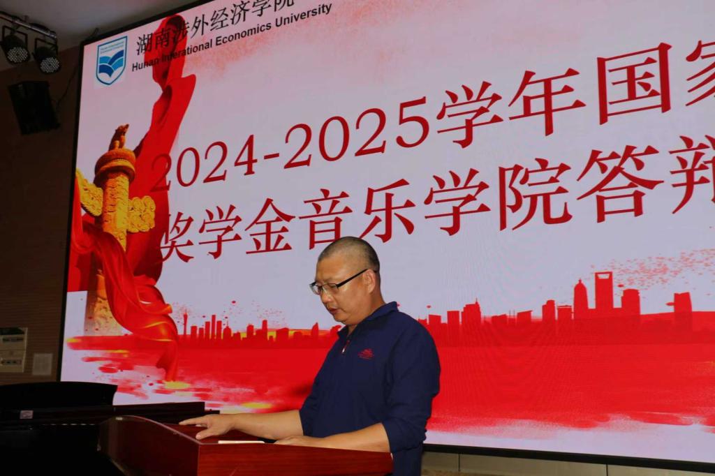 答辩会上,候选学子依次登台,以PPT展示结合现场陈述的方式,全面呈现个人风采。他们围绕思想觉悟、学业成绩、专业实践、艺术创作与志愿服务等维度展开汇报:舞蹈学专业学子分享了在省市级舞蹈大赛中的备赛历程与金奖收获,音乐学专业学生展示了以学业排名前1%的成绩斩获全国赛事奖项的成果,学前教育专业同学则汇报了参与“非遗音乐传承”科研项目的探索与感悟。从合唱团指挥到志愿服务领队,从课堂深耕到赛场拼搏,学子们用详实的数据与生动的故事,诠释了音乐学子“德艺双修”的追求。现场氛围严肃而热烈,既展现了评审工作的严谨规范,也彰显了学子们扎实的专业功底与积极向上的精神风貌。答辩尾声,音乐学院党支部书记周孝贵作总结讲话。他对候选学子的出色表现给予高度肯定,称赞他们既是专业领域的佼佼者,也是全面发展的践行者。他强调,国家奖学金不仅是一份荣誉,更是一份责任与期许,希望入选学子珍惜荣誉、深耕艺术,未入选的同学亦能以榜样为镜、砥砺前行。此次答辩既是“优中选优”的选拔过程,更是跨年级朋辈交流、共同成长的重要平台。