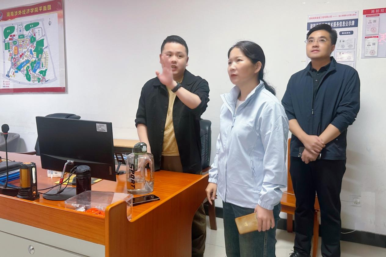 随后,王萍副校长前往图书馆。在阅览室,她轻步绕行查看,见同学们正专注研读,便轻声与在场学生交流,了解专业学习规划与图书馆资源使用情况,对同学们勤学的精神风貌给予肯定。在校园监控室,她叮嘱工作人员要强化责任意识,紧盯关键时段和重点区域,确保校园安全防控无死角,为师生营造安心的学习生活环境。
