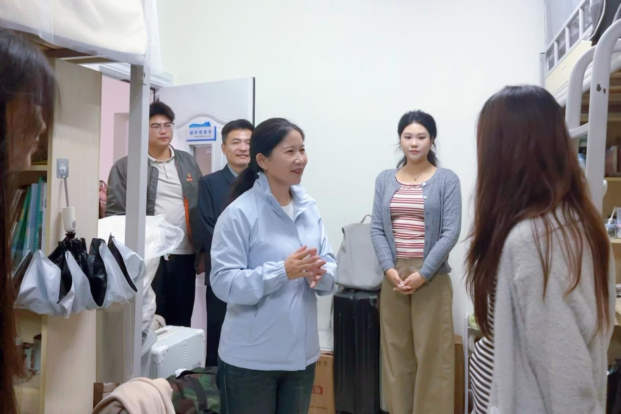 在西16等宿舍楼栋,王萍副校长与同学们面对面交流,详细询问住宿条件、生活配套、后勤服务等情况。她告知同学们,在学习生活中遇到任何困难可第一时间向辅导员或学院院长、书记反馈,学校与学院会第一时间协调处理,全力解决大家的后顾之忧。同时,她勉励同学们珍惜集体生活机会,在日常相处中互帮互助、共同进步,构建安全有序、和谐温馨的宿舍氛围。与住宿辅导员交谈时,她着重强调“与学生在一起”的育人理念,要求辅导员队伍进一步强化责任担当,及时掌握学生思想动态与生活需求,切实筑牢宿舍管理与育人服务的双重保障。