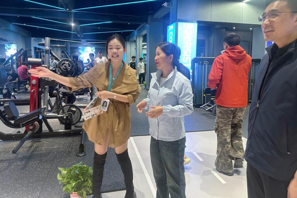 在学校工会健身活动中心,王萍副校长与中心负责人深入沟通,详细询问健身器材维护流程、场地开放时段管理等工作细节,对中心优质的硬件设施给予认可。她走到健身师生中间询问锻炼体验与需求建议,并倡议师生在忙碌的工作学习之余主动参与体育锻炼,养成健康生活方式,保持良好身心状态。