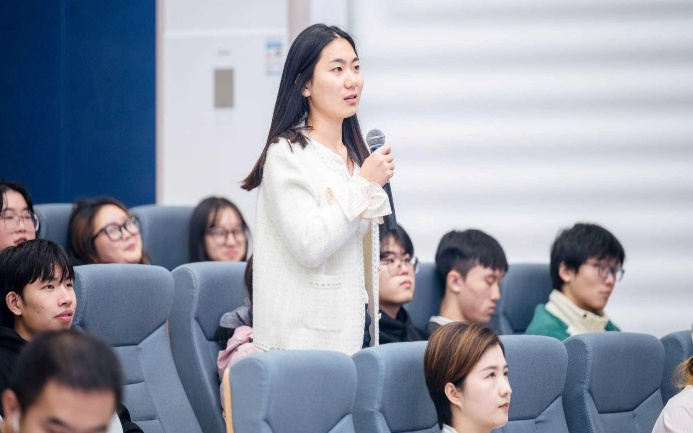 湖南湘江新区大学生就业创业服务中心李俊主任作就业指导开场白。她以精辟的论述抛砖引玉,引导同学们积极思考个人职业规划,为后续的深度分享营造了良好的氛围。