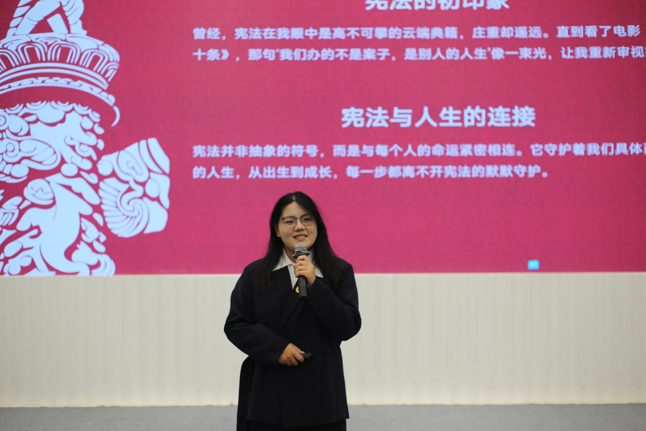 决赛现场氛围热烈,晋级选手紧扣“以宪法为基,筑法治长城”主题,结合社会热点、典型案例及个人感悟展开演讲。选手们台风稳健、语言流畅,既有对宪法原则的深刻解读,也有参与法治实践的真实分享,将宪法精神与青年担当融入话语间,真挚的表达赢得评委与观众的阵阵掌声。