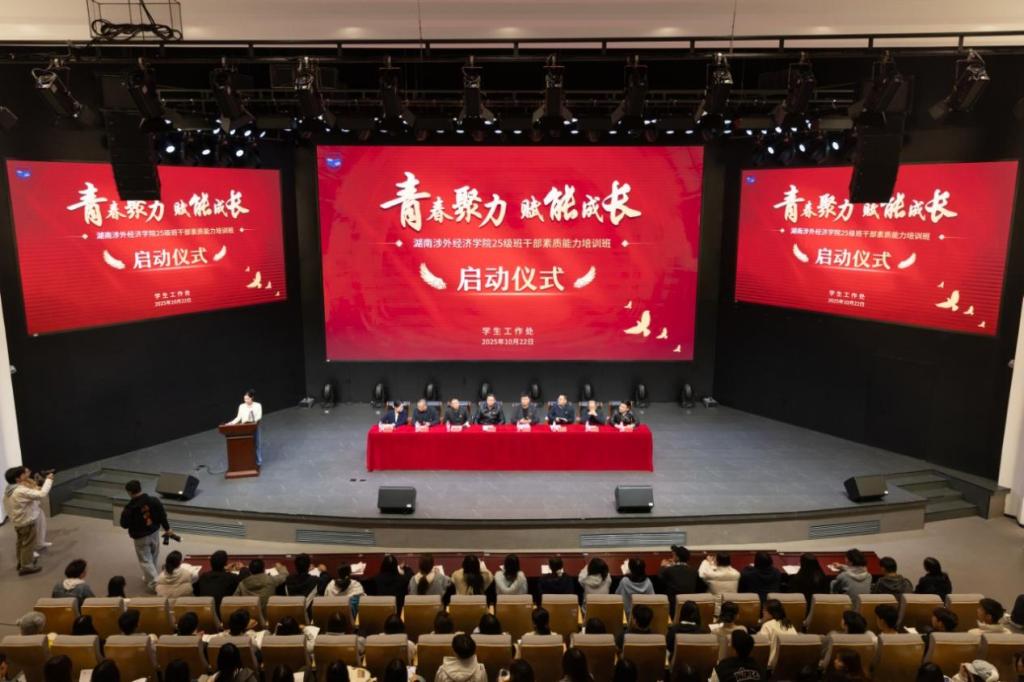 10月22日,beat365官网“青春聚力,赋能成长”2025级班干部素质能力培训班启动仪式在学术讲坛举行,校长助理、学生工作处处长徐京都,校团委书记李术凯,各学院党总支书记等出席仪式,2025级新生辅导员、班干部代表参加。