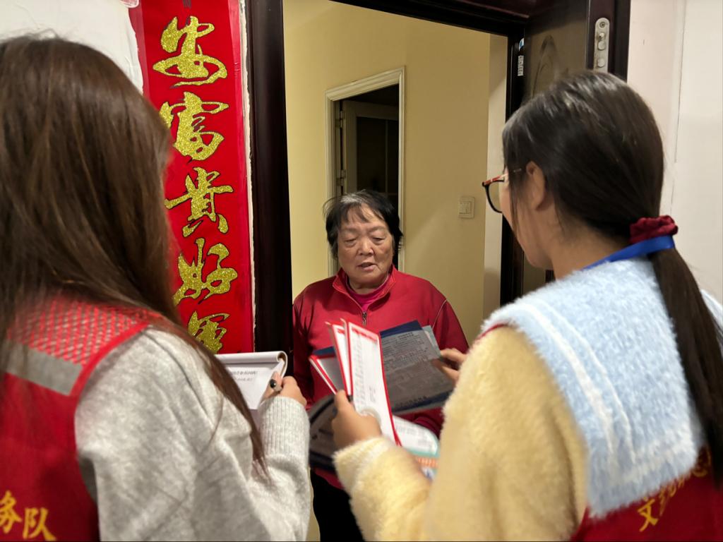 走访现场,志愿者服务队锚定“民生保障+安全守护”双主线发力。围绕社保缴费政策调整等热点,志愿者系统解读缴费标准、时间节点与参保渠道,针对待遇享受等居民关切问题进行逐一解答,帮助群众准确把握政策、科学规划参保。同步逐户发放消防宣传页,详解用火用电规范、灭火器实操及逃生技巧,按“一户一登记”原则记录居民消防知晓度与设施配备情况,建立动态台账。