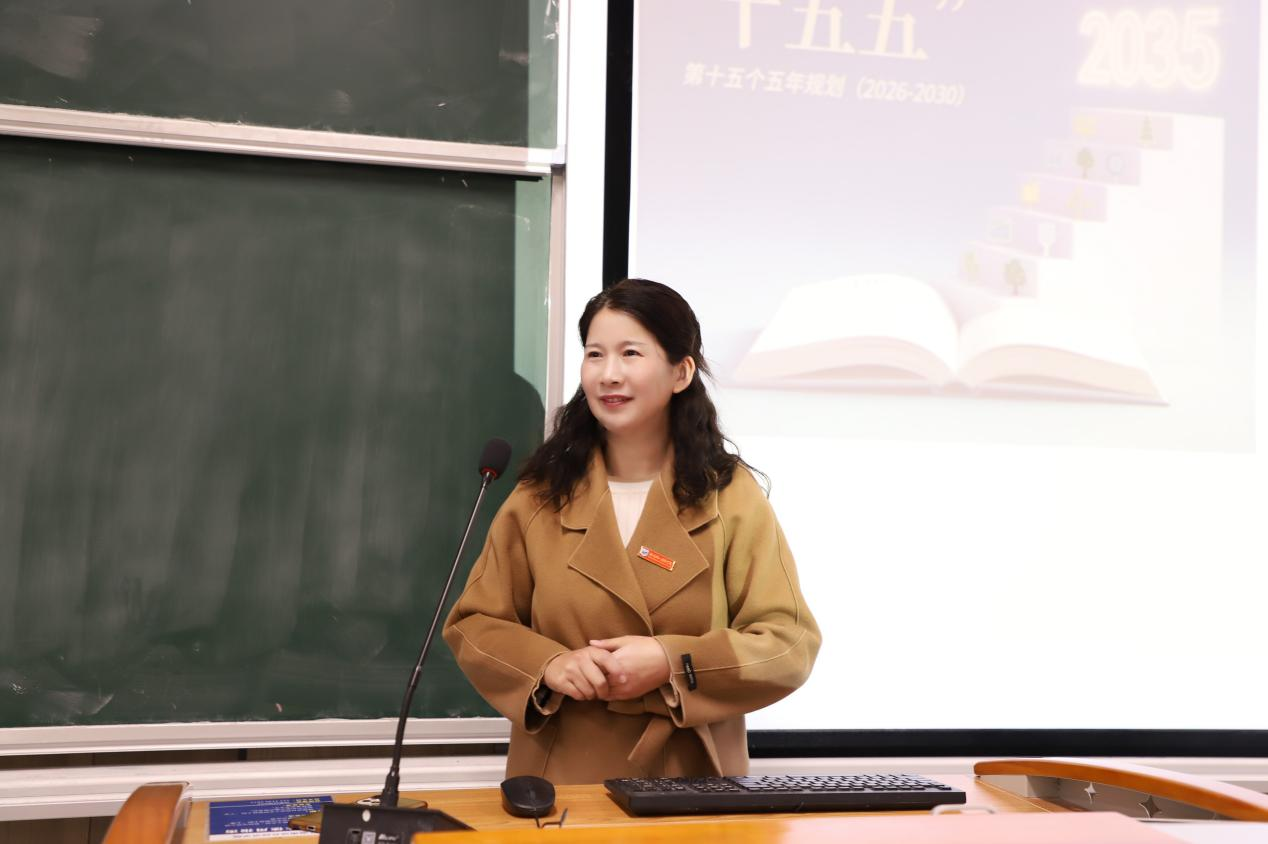 11月20日下午,外国语与国际教育学院在第五教学楼106教室举办“跨语融教”大讲堂第八期活动。副校长王萍作“高校教师职业发展新生态:资源提升、团队协作与个人品牌溢价”专题分享,学院全体教职工参会,执行院长许二鹏主持。
