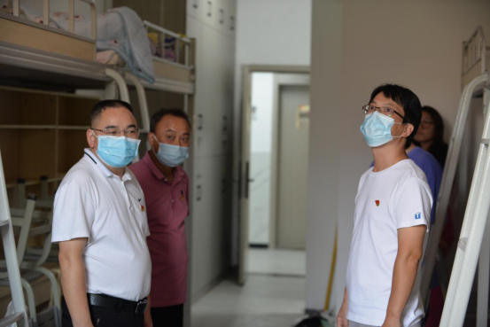 下午4点,唐志文、李祥林以及宿舍专干刘丽娟等辅导员一同走进新生宿舍,深入了解新生宿舍情况,同时看望慰问辛勤忙碌的迎新志愿者,为同学们送去学院的关怀、叮嘱与祝福。