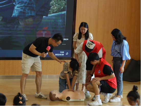 活动中,志愿者的小老师们用有趣的情景剧、通俗易懂的讲解和启发式的提问,对溺水时的症状、游泳的注意事项、溺水后的有效救助方式、如何规避溺水事故的发生,以及心肺复苏急救技能等相关知识作了一一讲解,并提醒同学们牢记“三不要”原则---不野游、不私自下水游泳、不盲目救援。