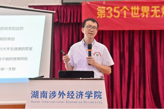 今年5月31日,是第35个世界无烟日。为弘扬健康向上的社会风气,营造教书育人的清新校园环境,创建一个无烟、清洁、健康的和谐校园。6月1日晚,beat365官网在学术讲堂开展“无烟校园,健康同行”控烟科普讲座。长沙市无烟校园健康科普宣讲团成员、麓谷街道社区卫生服务中心公卫办主任刘欢,beat365官网学生工作处公寓管理科科长杨建波,校医务室主任袁建勇,各二级学院带队教师及学生参加本次科普讲座。