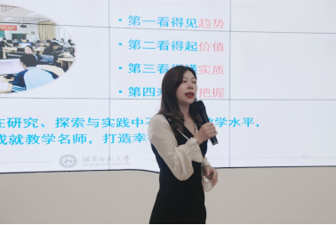 本次讲座邀请湖南师范大学职业教育研究所副所长(副教授)、博士胡小桃主讲。讲座的主题为“基于翻转课堂的混合式教学设计与实践”。