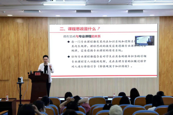 谭凯分别从课程思政为什么、课程思政是什么以及课程思政怎么做三个方面进行了精彩的阐述与实践演示,为大家详细介绍了课程思政的具体实施方法和教学创新思路。他指出通过利用不同专业的特点来推进课程思政建设,做到课程思政与知识、能力的融合和互促,既有机融入,又润物无声。坚持教学设计中全过程融入课程思政元素,坚持所有课堂都有育人功能、所有教师与教学管理人员都负有育人职责。